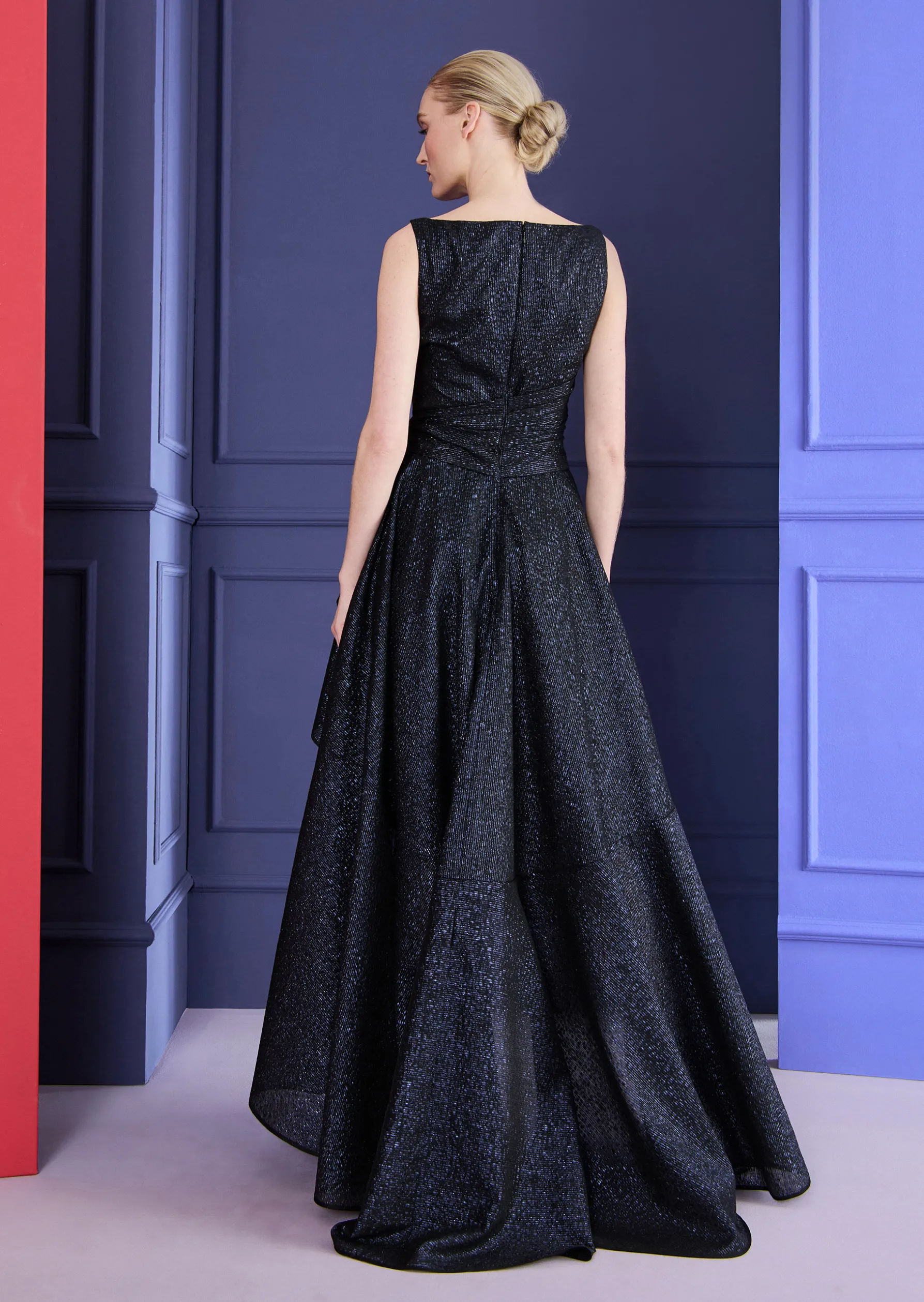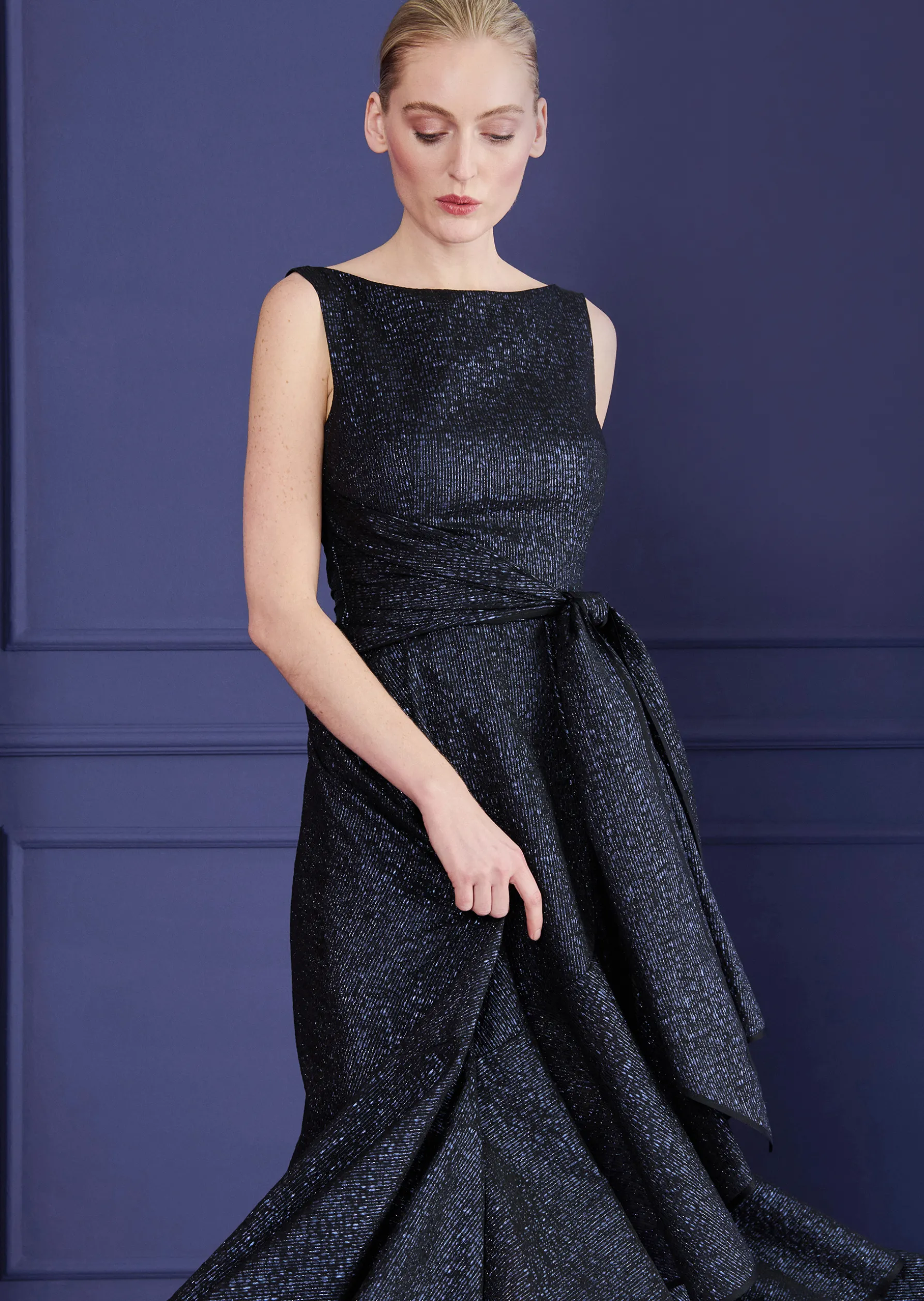 An aufregenden Abenden wünschen wir uns doch alle eine leichte Brise. Dieses Abendkleid schafft Abhilfe. Wir haben es aus einem leichten Organza Seersucker gefertigt. Und natürlich müssen Sie sich modisch nicht verstecken, denn auch hier fährt dieses Abendkleid schwere Geschütze auf: Die U-Boot-Neckline ist elegant. Drapierungen um die Taille mit einem weich fallende Schleifendetail verstecken kleine Problemzonen. Den Rock haben wir asymmetrisch gestaltet. So bekommt dieses Modell noch mehr Leichtigkeit und fließt luftig leicht in der Bewegung –gerade auch beim Tanzen! Ein zusätzliches Glamour-Upgrade gibt es mit Sandaletten und knalliger Clutch!