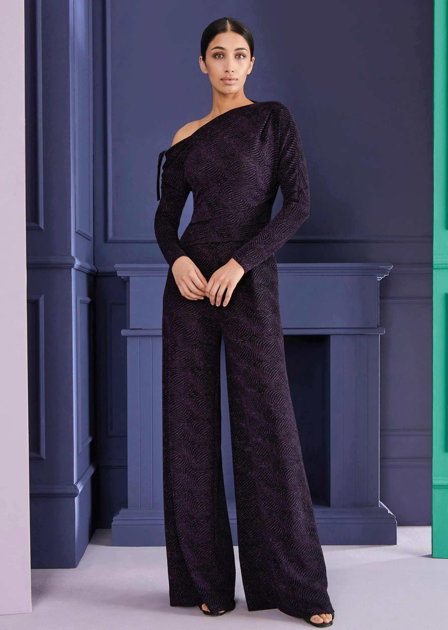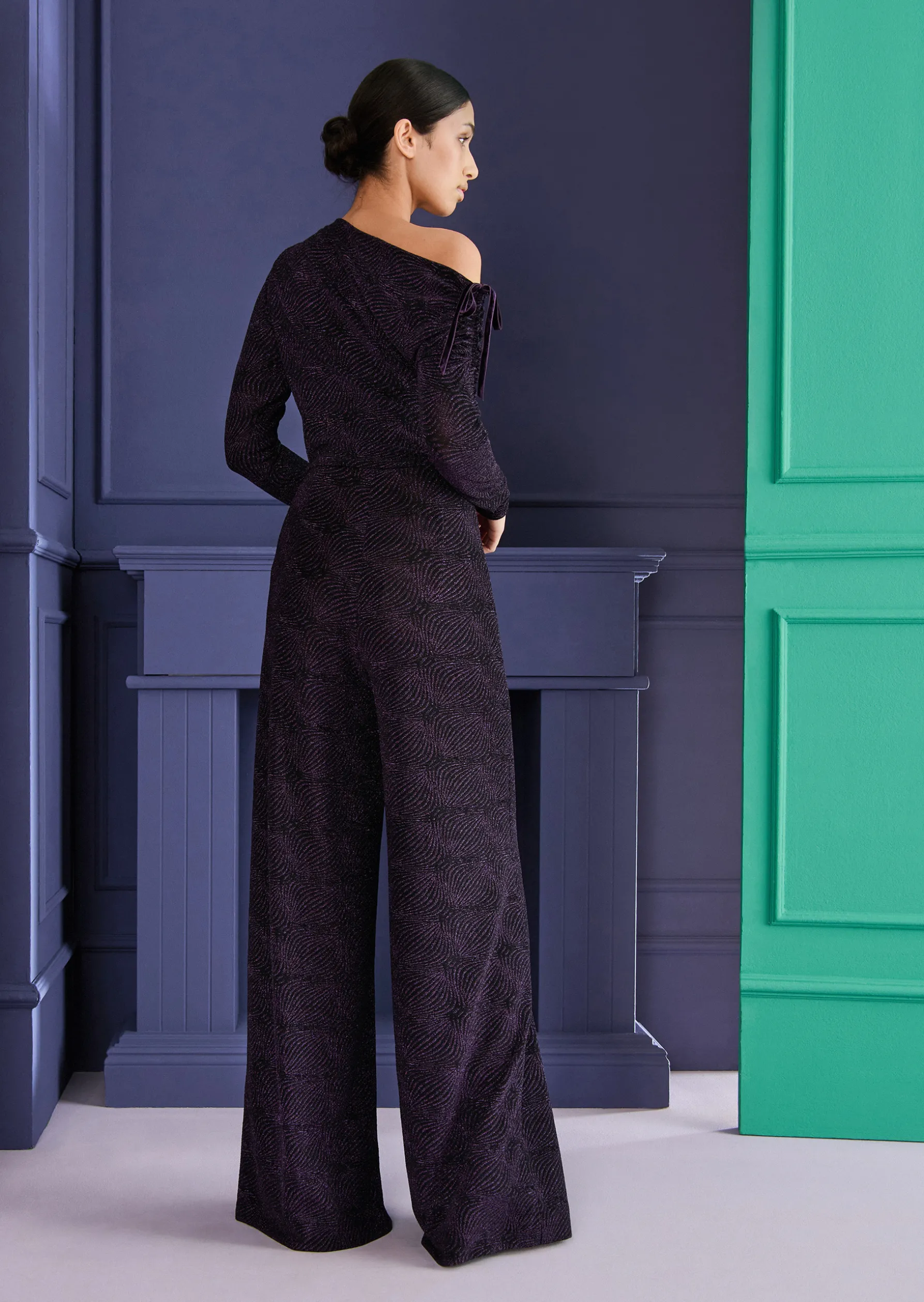 Lässig oder elegant? Unser neuer wandelbarer Jumpsuit aus einem schimmernden Metallic Cloqué kann beides. Die Taille wird schmal akzentuiert. Die asymmetrischen langen Ärmel sorgen für diesen ganz besonderen, spannenden Look. Auf einer Seite lässt sich der Ärmel über einen Tunnelzug individuell raffen. Dank des weiten U-Boot-Ausschnitts lassen Sie das Oberteil ganz nebensächlich cool und doch so verführerisch über die Schulter rutschen. Das weiter geschnittene Bein ist dazu feminin und super edel. Ein extravaganter Look für das nächste Abendevent. Stylen Sie dazu Ihre schönsten Armreifen, Riemchensandaletten und eine Clutch in Kontrastfarbe.