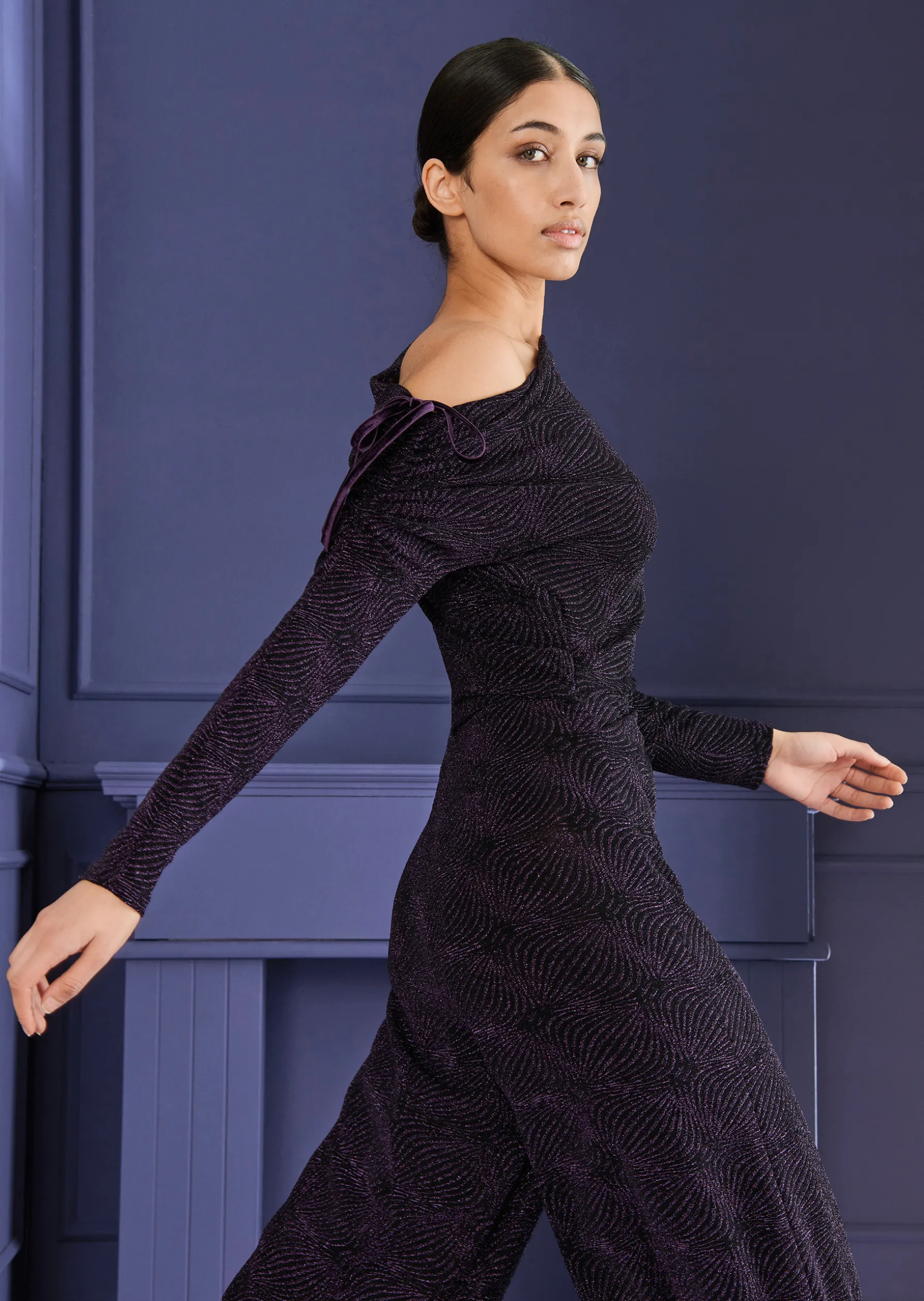 jumpsuit aus diamond metallic cloqué, farbe aubergine