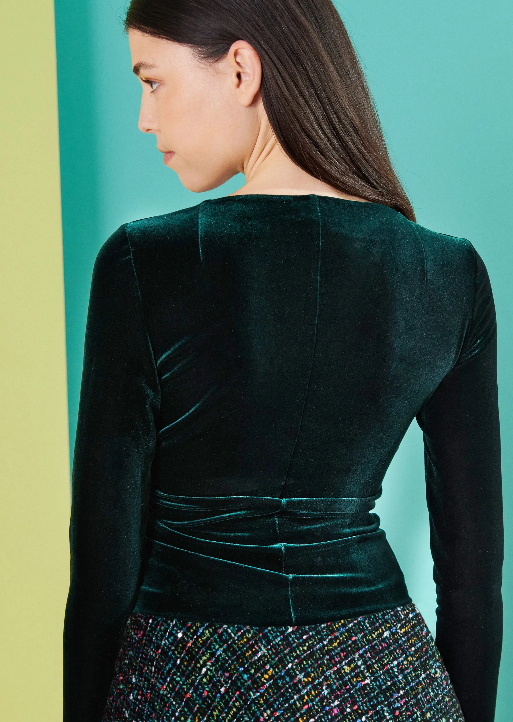 oberteil aus stretch velvet, farbe hunter grün