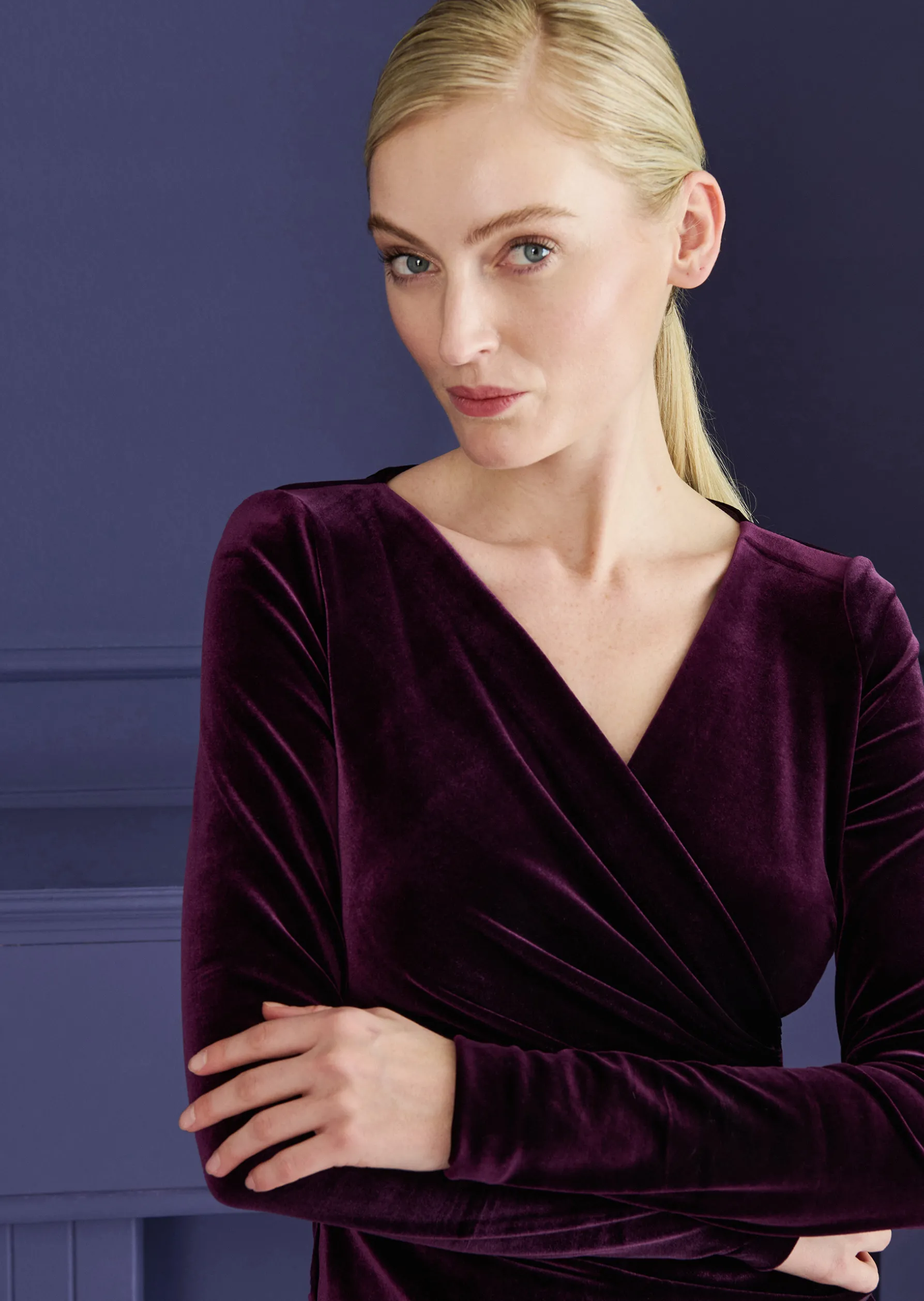 Die Fashion-Fee gewährt Ihnen hier gleich mehrere Wünsche und Anforderungen an Ihr neues Lieblingstop: Dieses Oberteil aus Stretch Samt ist bequem und trägt sich wunderbar weich auf der Haut. Aber nebenbei ist es auch noch ein wenig sexy durch den schönen, akzentuierten Ausschnitt, figurformend durch die raffinierten Drapierungen und auf lässigste Art und Wiese glamourös. Da bleiben wirklich keine Wünsche mehr offen. Tragen Sie dieses Modell als Basic-Top zur Jeans, aber genauso als praktischen Allrounder zu ihrem neuen Statement-Rock oder unterm Business-Blazer.
