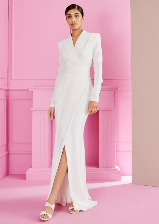 langes kleid aus stretch triacetate crêpe, farbe weiß