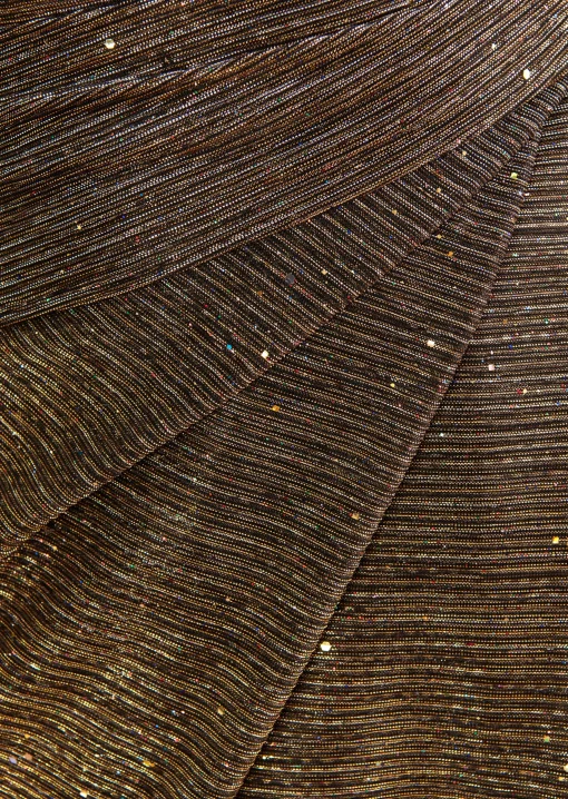 Mondän und mit dezentem Hippie-Flair begeistert dieses Abendkleid aus schimmerndem Metallic Voile. Der V-Ausschnitt betont ihr Dekolleté und raffinierte Drapierungen verschmälern die Taille. Ein hoher Schlitz bringt Bewegungsfreiheit auf der Tanzfläche. An den weiten Ärmeln wurde der Stoff einlagig verarbeitet, was diese fast schon wie eine leichte Stola erscheinen lässt. So zeigen Sie etwas Haut, aber nicht zu viel und feiern selbstbewusst und wunderschön bis in die frühen Morgenstunden.